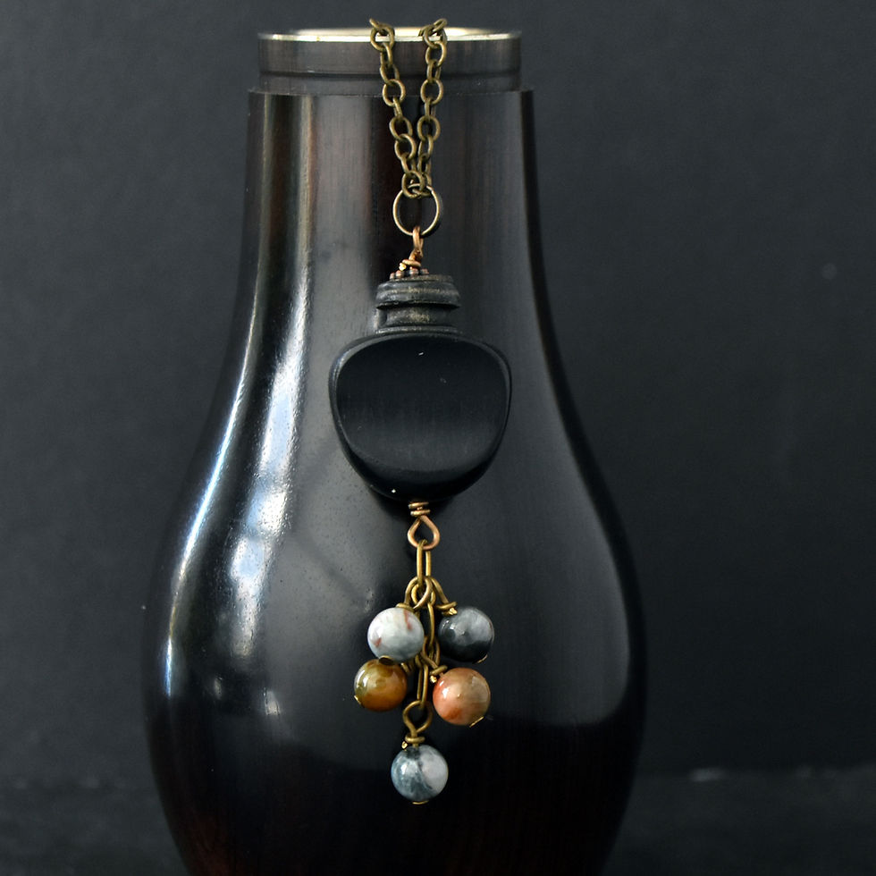 Violin Tuning Peg Long Necklace with Hawk's Eye Bead Cascade
